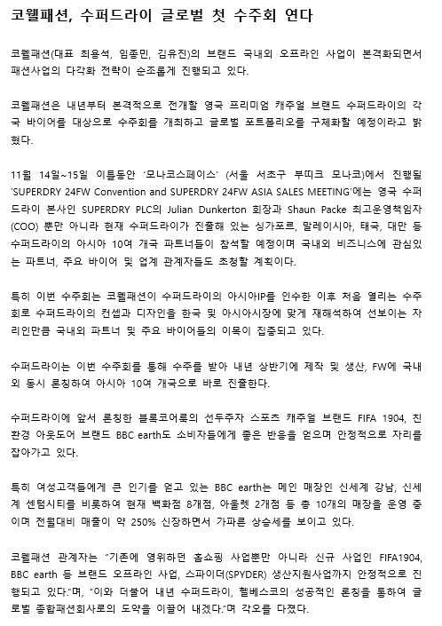 코웰패션, 2분기 매출 2883억원…전기대비 2.7% 증가