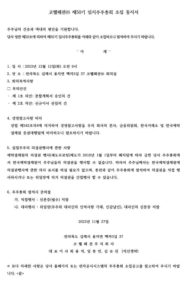 제50기 임시주주총회 소집통지